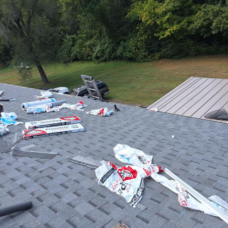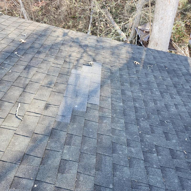 Speedy Pro Roofing replaced three damaged architectural shingles on a roof in Kingsport, Tennessee. The damage was caused by a fallen tree branch. The team removed the affected shingles and installed new ones to restore the roof's condition.
