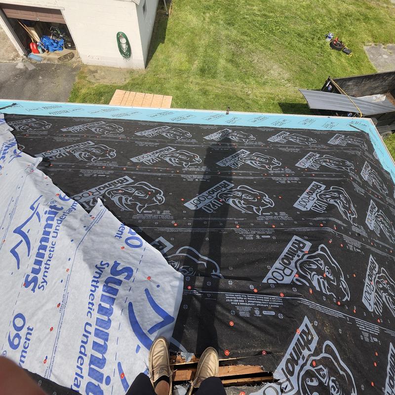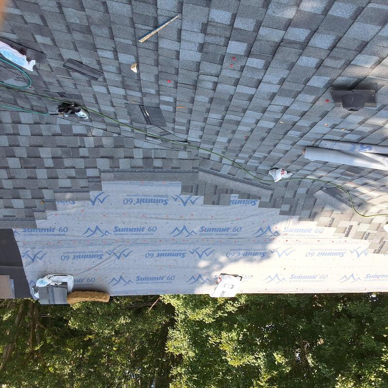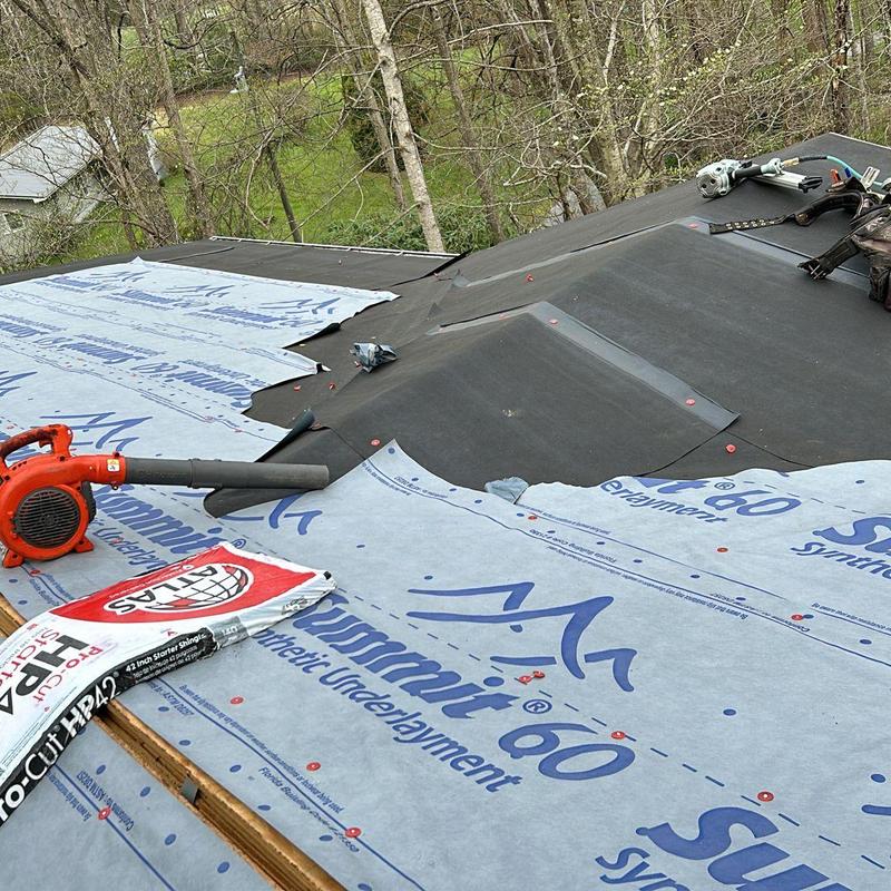 Speedy Pro Roofing completed a full roof replacement in Johnson City, Tennessee. The team removed old shingles down to the planking, installed ice and water barriers around the perimeter and in valleys, applied synthetic underlayment elsewhere, and finished with Atlas Pinnacle Pristine Majestic Shake shingles. New counter flashing was added at the chimney.
