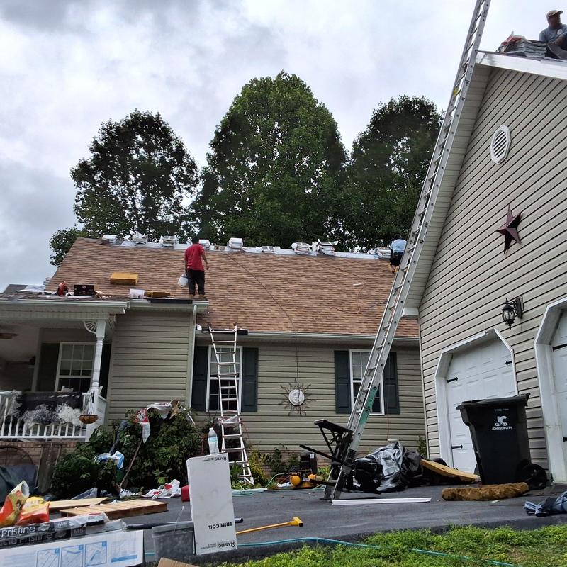 Speedy Pro Roofing completed an insurance-based roof replacement for a house and detached garage in Johnson City, Tennessee. The work addressed storm damage and restored structural protection for both buildings.