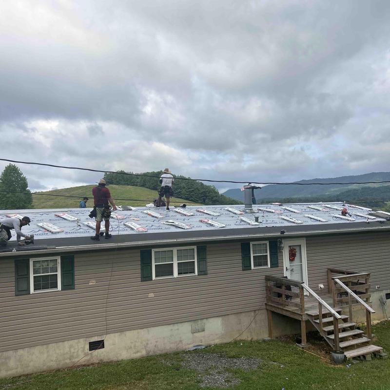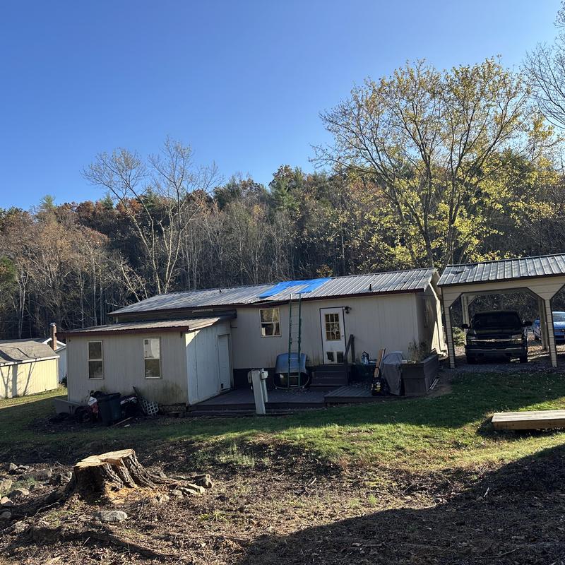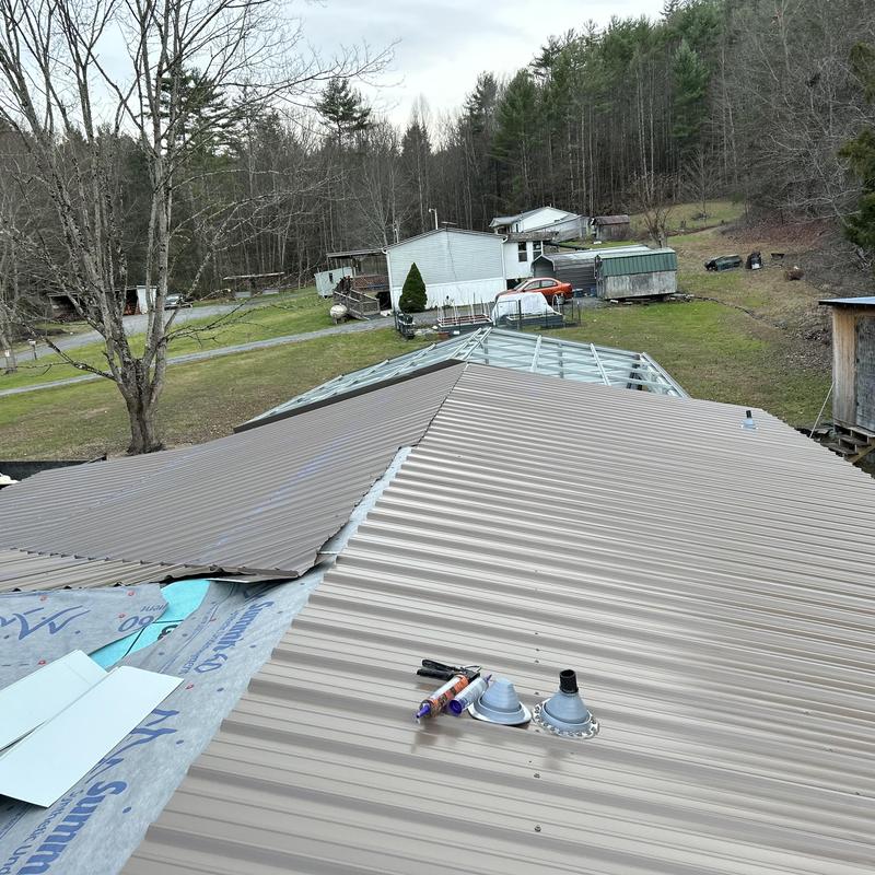 Speedy Pro Roofing completed a metal roof replacement on a house in Erwin, Tennessee. The project involved removing existing shingles and installing a new metal roofing system for improved durability and weather resistance.