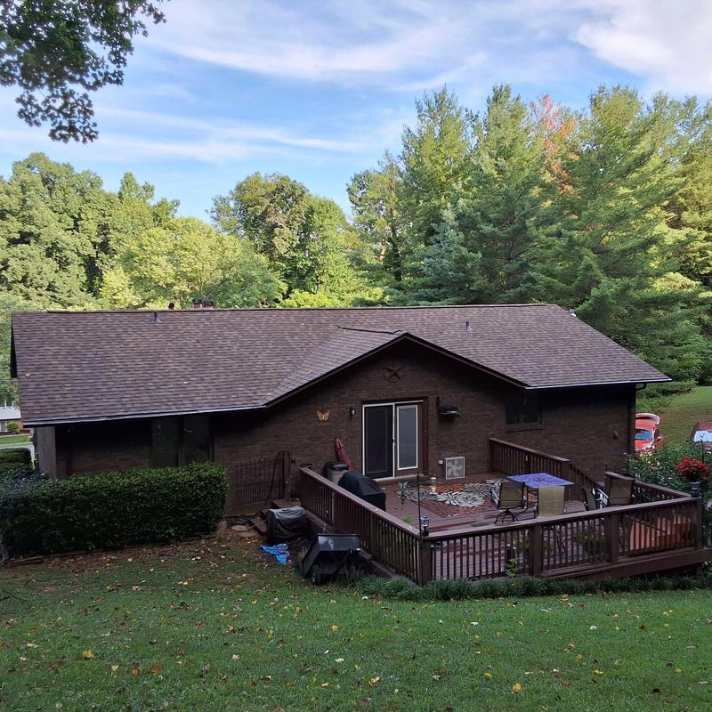 Speedy Pro Roofing replaced a 30-year-old leaking roof with new Black Shadow shingles in Elizabethton, Tennessee. The new roofing system improves performance and resolves all prior water issues.
