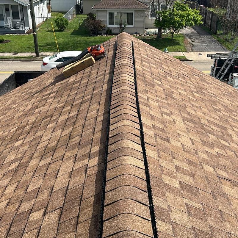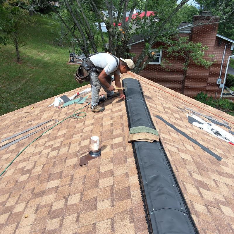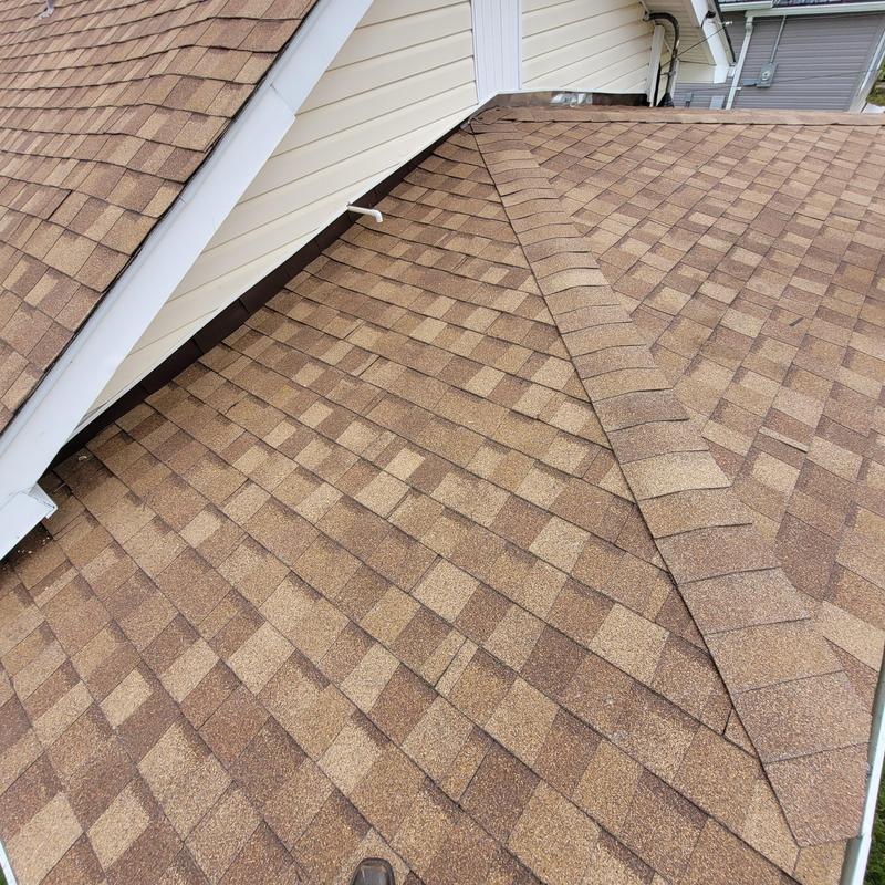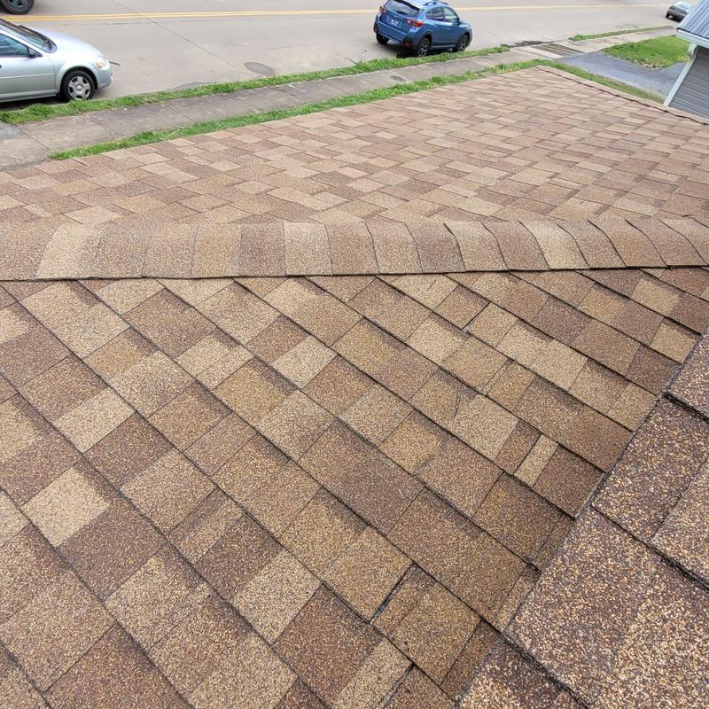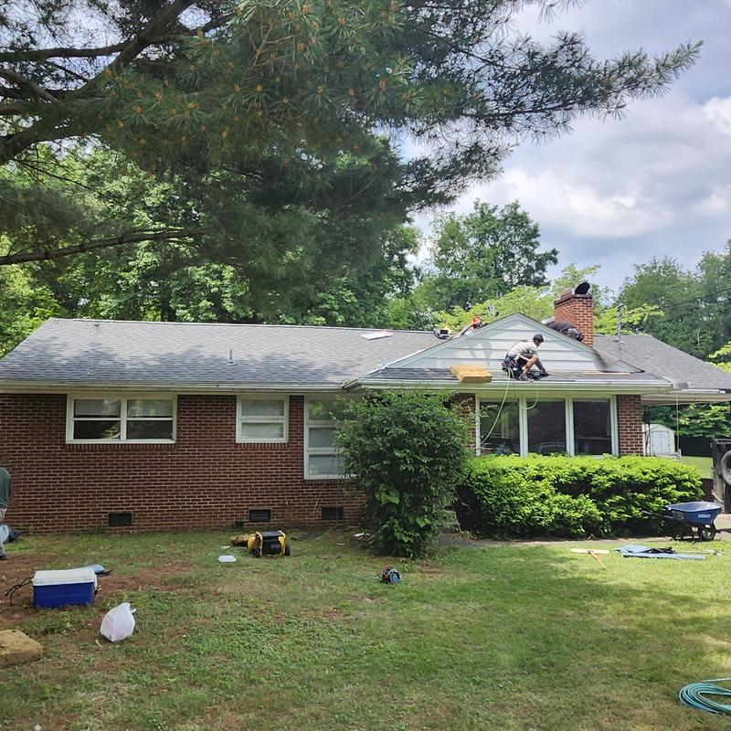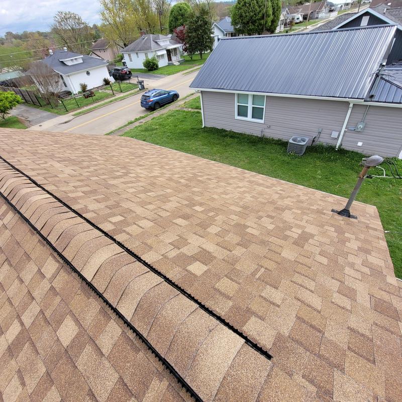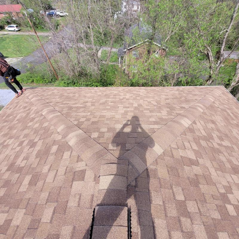 Speedy Pro Roofing installed new Morning Harvest shingles and removed a chimney down to the roof line for a homeowner in Kingsport, Tennessee. The project improved roof structure and met the client's specific request.
