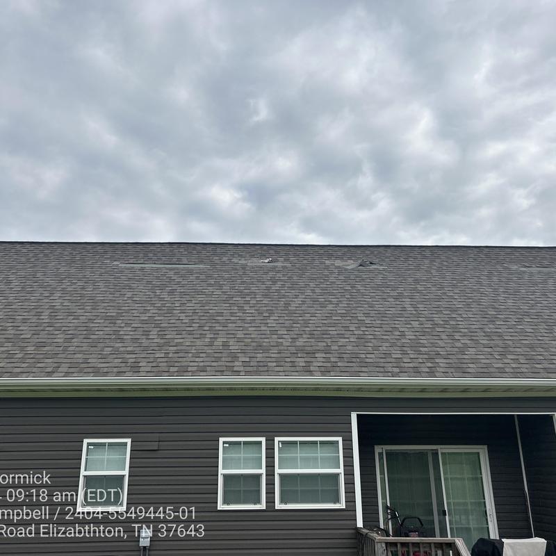 Speedy Pro Roofing inspected a residential roof in Kingsport, Tennessee, after the homeowner discovered missing shingles. The roof's age was unknown, leading the homeowner to contact their insurance provider for a claim.