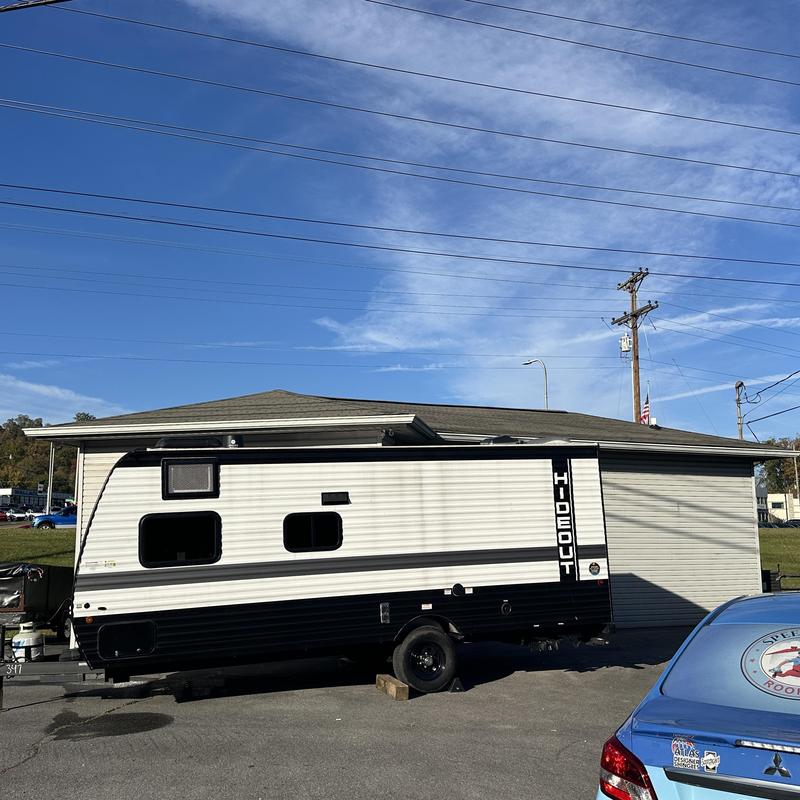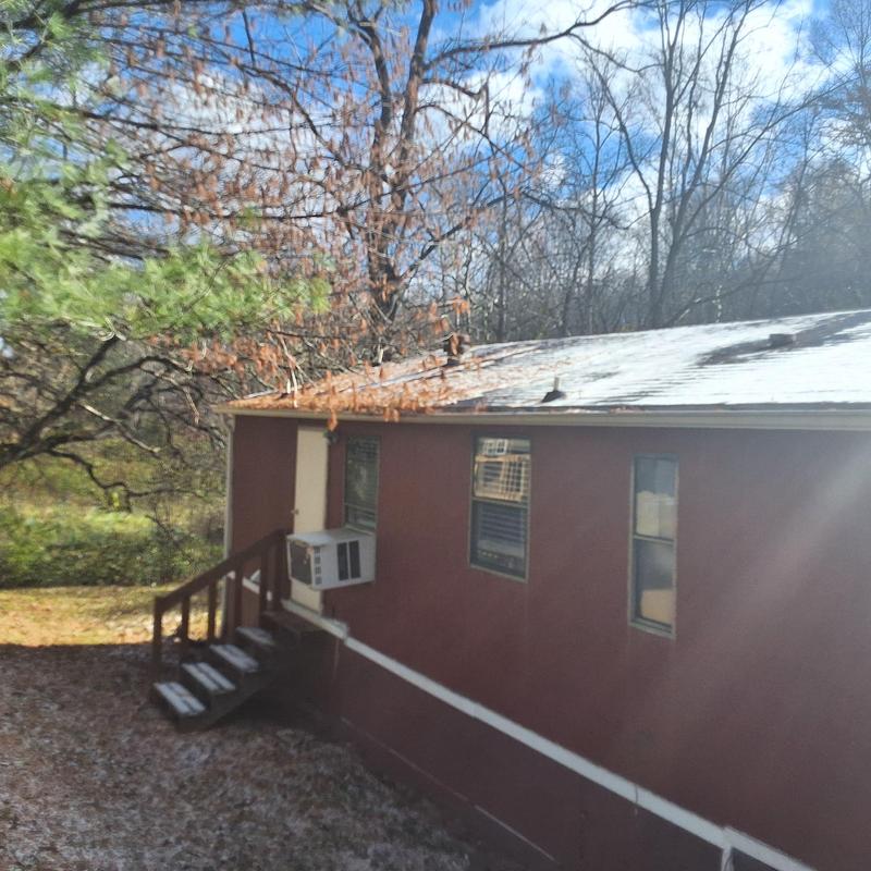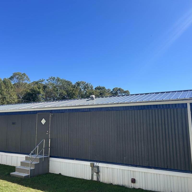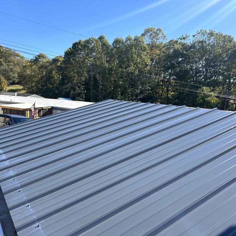 Speedy Pro Roofing completed a mobile home roof replacement using light gray metal panels in Kingsport, Tennessee. The project involved removing the existing roof and installing new metal roofing for improved durability and weather resistance.