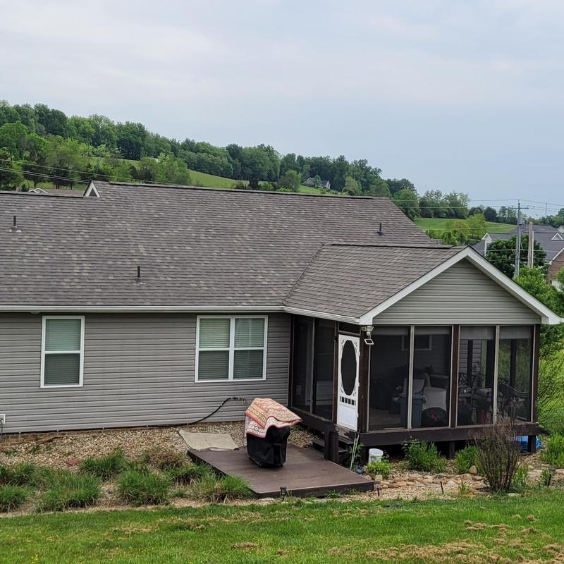 Speedy Pro Roofing replaced missing shingles on an older roof in Kingsport, Tennessee. The homeowner selected Weathered Wood as the new shingle color, improving the roof's condition and matching the existing structure.
