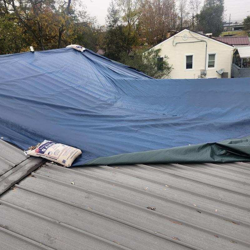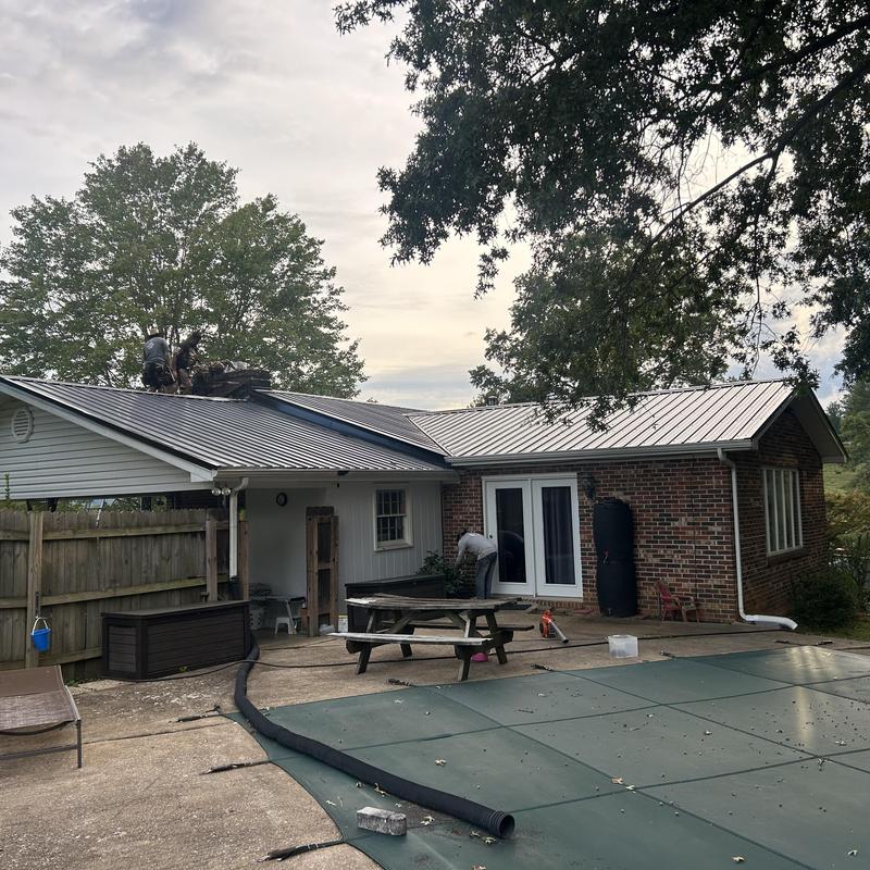 Speedy Pro Roofing replaced a damaged metal roof on a home in Johnson City, Tennessee, after a tree fell on the structure. The team installed an emergency tarp to protect the interior until the full roof replacement was completed.