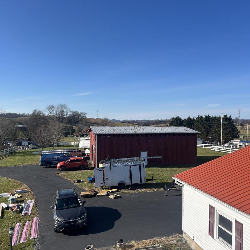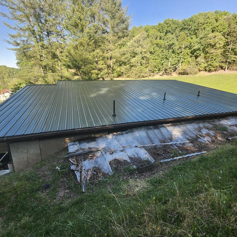 Speedy Pro Roofing completed a metal roof replacement on a three-generation family farm in Kingsport, Tennessee. The project involved removing the old roofing material and installing a new metal roof to improve durability and weather resistance.