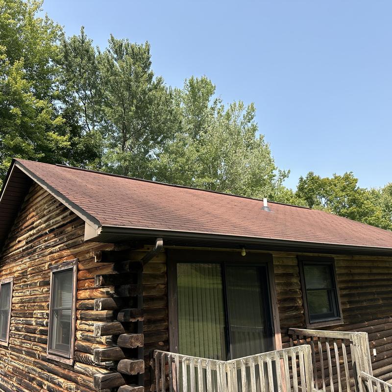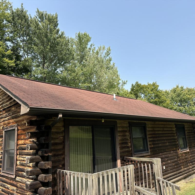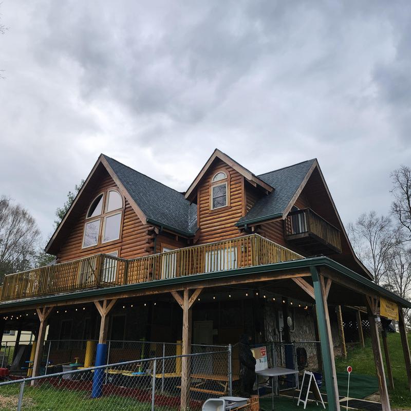 Speedy Pro Roofing installed new green shingles on a log home in Elizabethton, Tennessee. The roofing update complements the wooded surroundings and strengthens the home's exterior protection.
