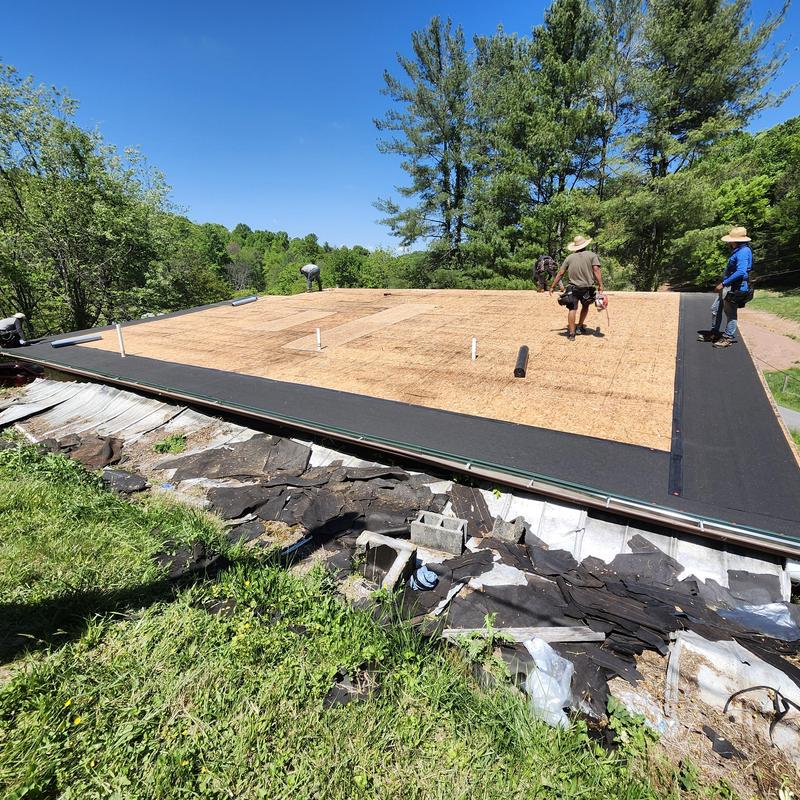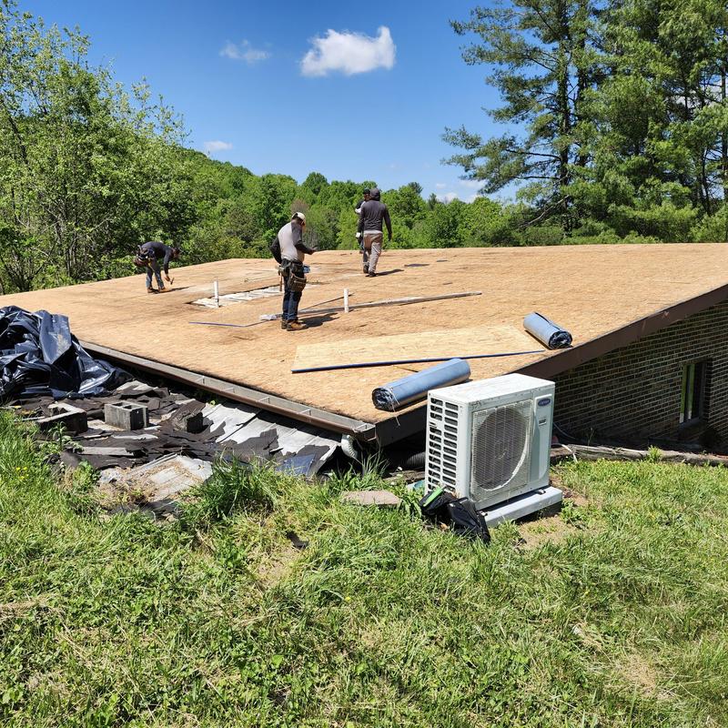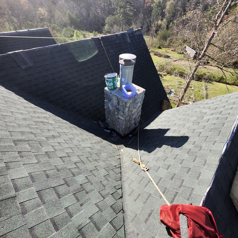 Speedy Pro Roofing completed a shingle roof replacement and removed a chimney in Erwin, Tennessee. The team replaced the existing roofing materials and safely dismantled the chimney structure to improve building function and safety.