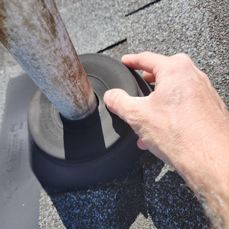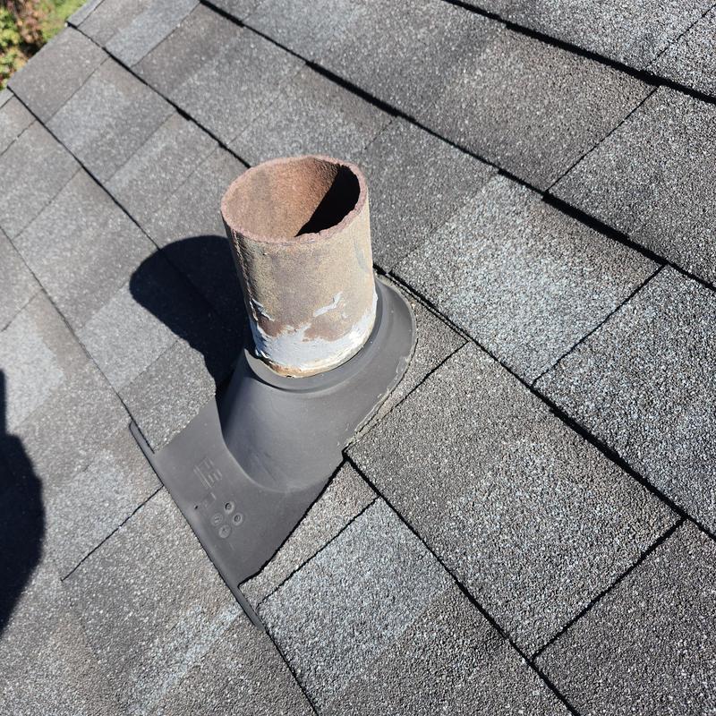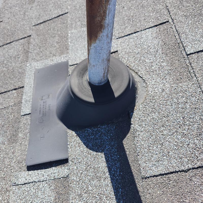 Speedy Pro Roofing replaced two damaged pipe boots on a residential roof in Bristol, Tennessee. The team removed the old components and installed new pipe boots to prevent water leaks and protect the roof structure.